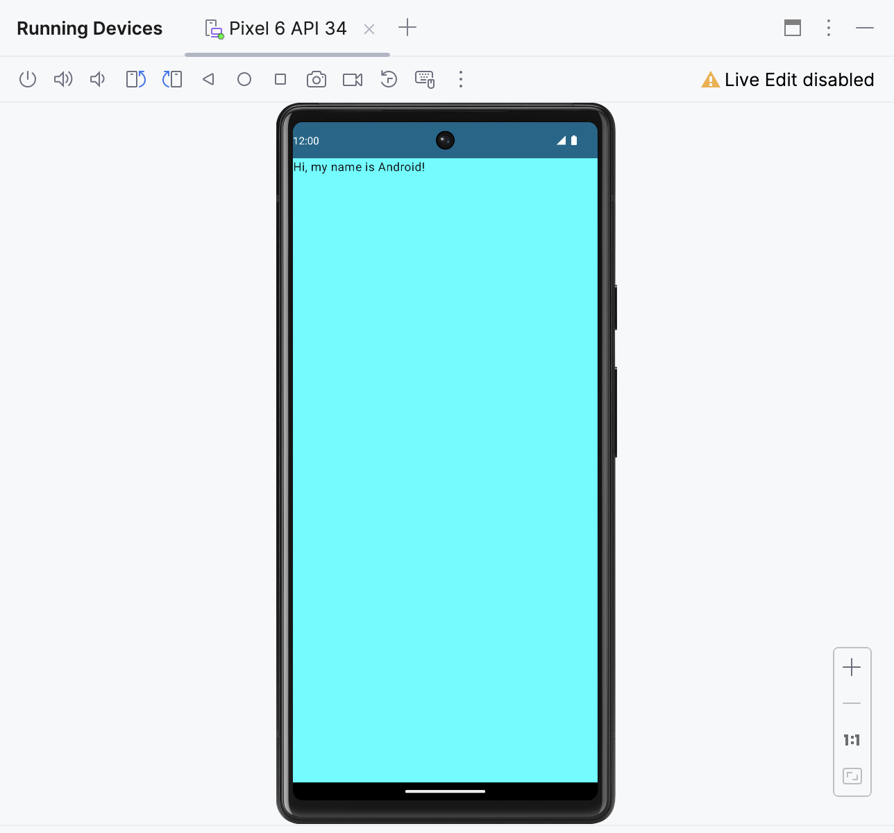 When your app is ready, it opens on the virtual device.