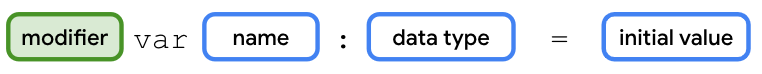 valkeyword to create an immutable variable and thevarkeyword for a mutable variable. Thevalorvarkeyword is followed by the name of the variable, then an=assignment operator, then the instantiation of the class object. You can see the syntax in this diagram: