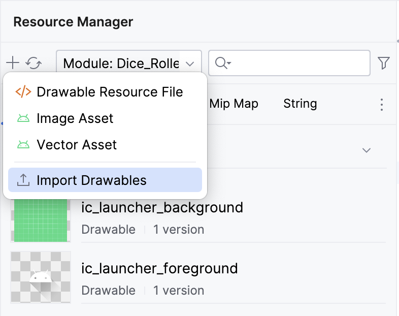 In Android Studio, click View âžś Tool Windows âžś Resource Manager âžś + âžś Import Drawables.