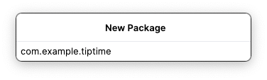 New Packagewindow, typecom.example.tiptime.Press Enter. The complete package structure for the