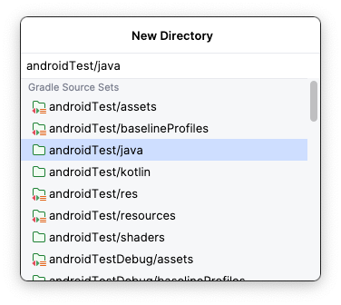 androidTestdirectory.Navigate to the androidTest directory in the project pane.