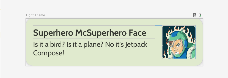 HeroesScreen.kt, under thecom.example.superheroespackage. You will be creating a list item and list composables in this file.Create a composable to represent a superhero list item, which looks like the following screenshot and UI specifications.