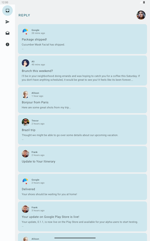 ReplyHomeScreen.kt: screen composables for home screen, including navigation elements.ReplyHomeContent.kt: composables that define more detailed composables of the home screen.ReplyDetailsScreen.kt: screen composables and smaller composables for the details screen.
