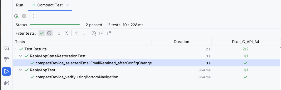 ReplyAppStateRestorationTest.kt:... @Test @TestCompactWidth fun compactDevice_selectedEmailEmailRetained_afterConfigChange() { ...