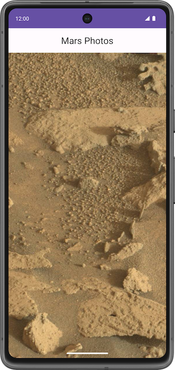 In this codelab, you continue working with the Mars Photos app from a previous codelab. The Mars Photos app connects to a web service to retrieve and display the number of Kotlin objects retrieved. These Kotlin objects contain the URLs of real-life photos from the Mars surface captured from NASA’s Mars Rovers.