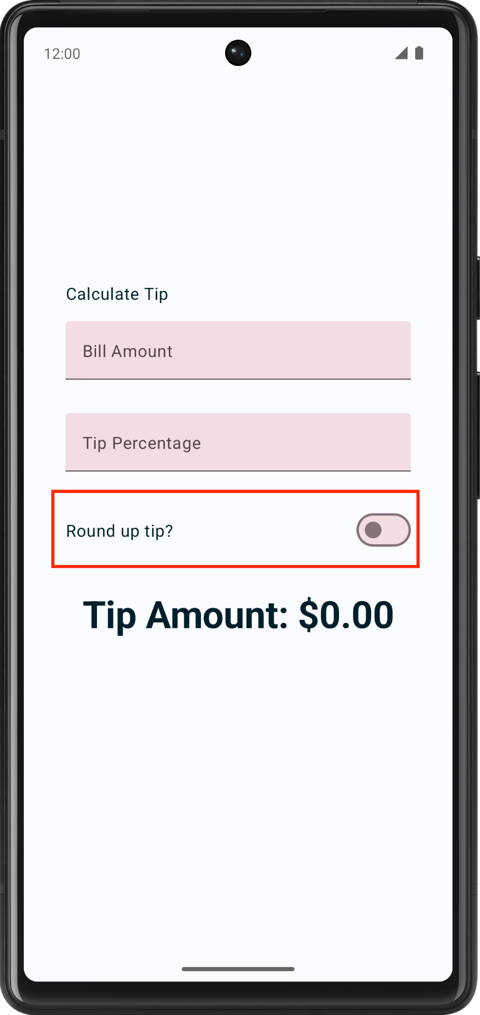 TipTimeLayout(), these are the state variables.var amountInput by remember { mutableStateOf("") } var tipInput by remember { mutableStateOf("") } var roundUp by remember { mutableStateOf(false) }