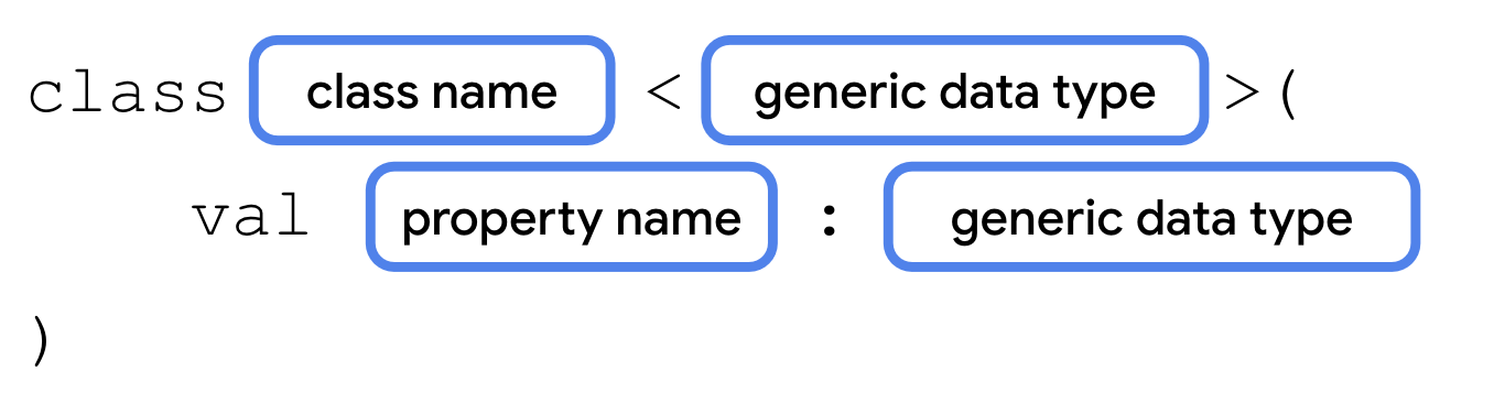 answerproperty. The actual data type —String,Int,Boolean, wtv — is specified when that class is instantiated. Wherever the placeholder name is used, the data type passed into the class is used instead.Syntax for defining a generic type for a class: