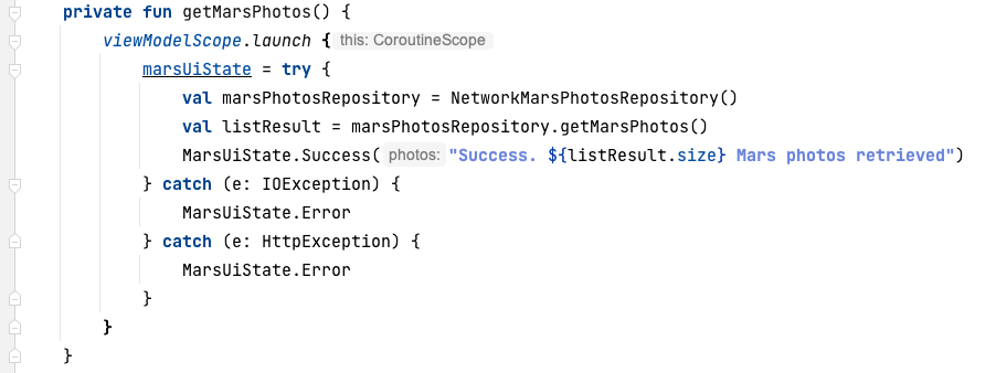 LazyVerticalGridlambda,items()takes in the list ofMarsPhotoand an item key asphoto.id.When the user scrolls through the grid (a